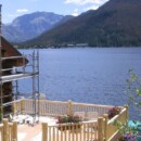 Log cabin and log rails being coated with PPG® ProLuxe™ Cetol® Log & Siding on the home of this long term client
